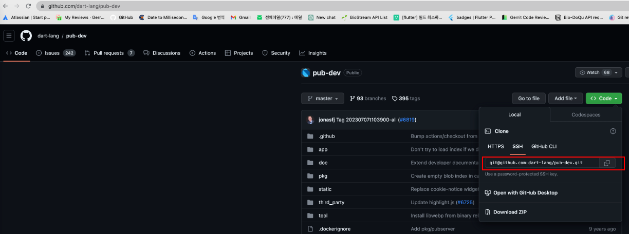 https:// 라는 프로토콜을 명시하고 뒤에 [DNS 주소:github.com]+[Repository: dart-lang/pub-dev.git] 의 조합으로 dns 를 만든다.